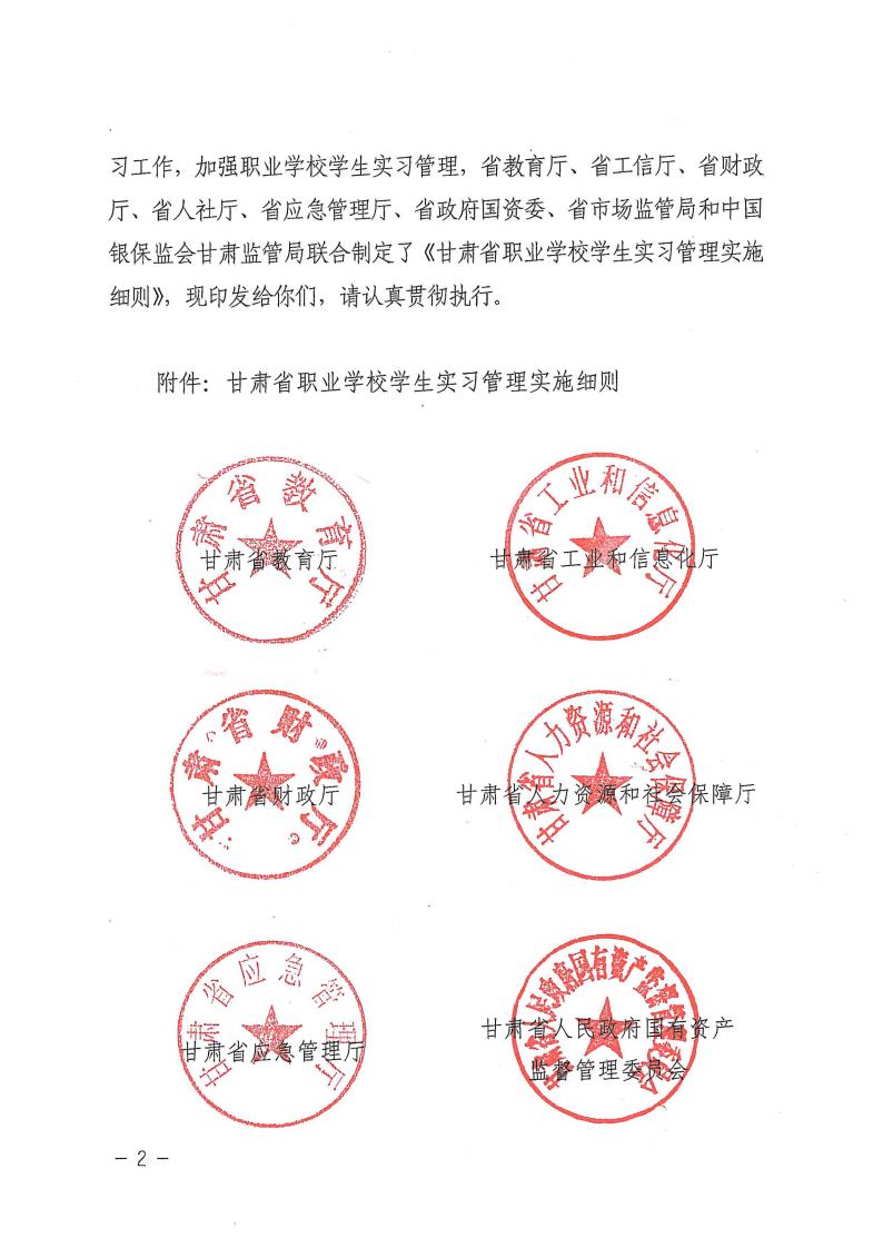 甘肃省教育厅等八部门关于印发《甘肃省职业学校学生实习管理实施细则》的通知
